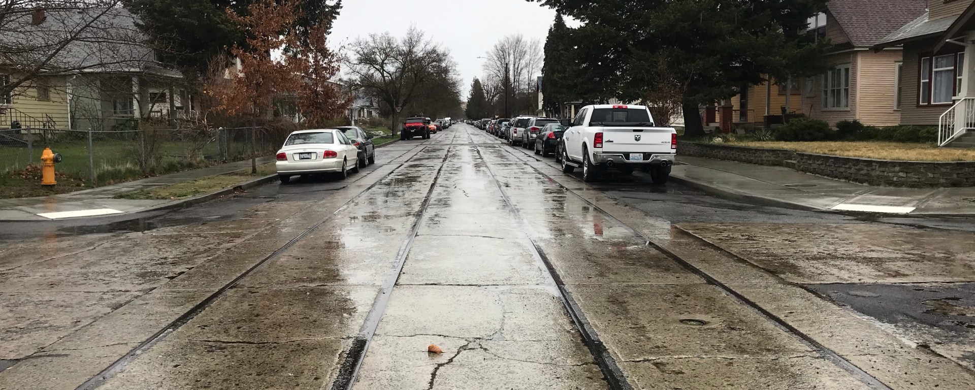 The West Central Spokane district was originally plotted in 1887. Most of the homes were built between 1900 and 1912. West Central started as a railyard and played a central part in the streetcar era. There are still parallel tracks cutting down the center of some of the long streets.