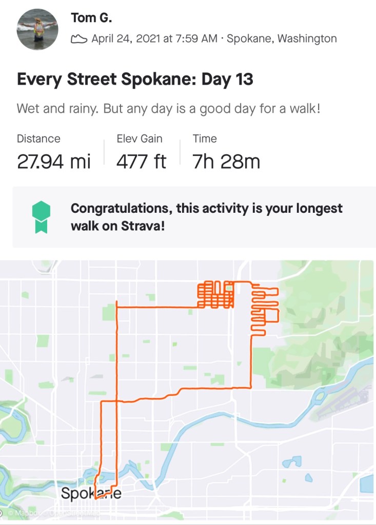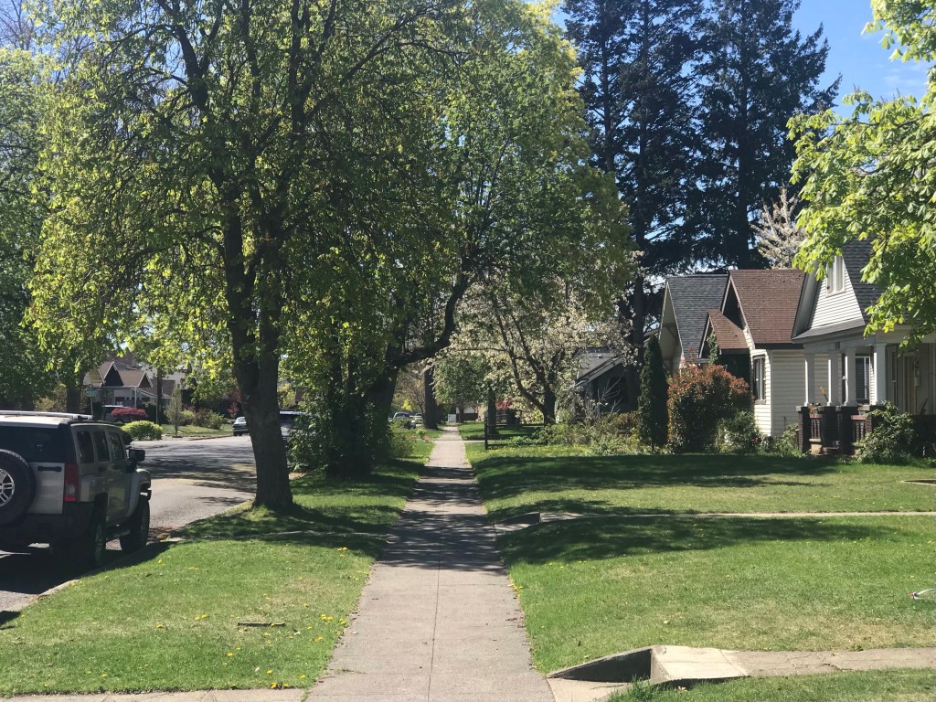 I’d heard stories about this second dose and was a little concerned about my six-mile return trip home. But I rolled the dice and committed to a portion of an Audubon-Downriver neighborhood before being overcome with chills as the Spokane skyline came into view.