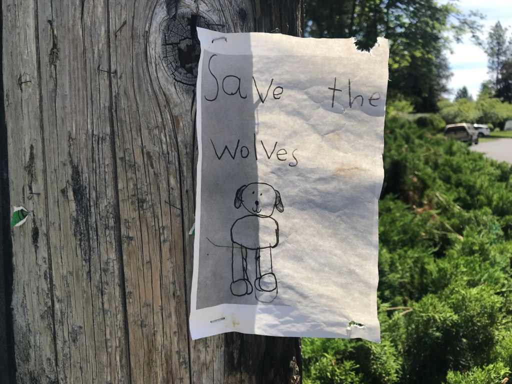 At the far top of the hill, I landed on one of Spokane’s southern limit borders—the Comstock neighborhood. The sort of nook where affluence is evident, if only by the abundance of Teslas. It was a peaceful walk, albeit one with only occasional sidewalks. On a handful of telephone poles was stapled a photocopied child’s drawing of what looked like a smiling dog. The message at the top in large, wobbly letters, “Save the Wolves.”