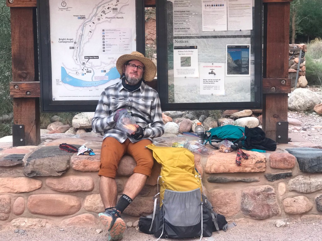 Winds picked up as we backtracked through the busiest parts of the trail. Tenish or so miles back through Cottonwood, Phantom Ranch, and eventually landing in Bright Angel Campground for an extended and much needed break. My intestines had finally relaxed after a marathon’s worth of grueling miles, and my appetite was suddenly in full force. We lounged at the intersection of Kaibab and Bright Angel as I devoured my last two tortillas loaded with peanut butter and refried beans, a bag of smashed strawberries, a Clif Bar and pack of orange Gu Shots, some BBQ chips, and a liter of Hammer Perpetuem.